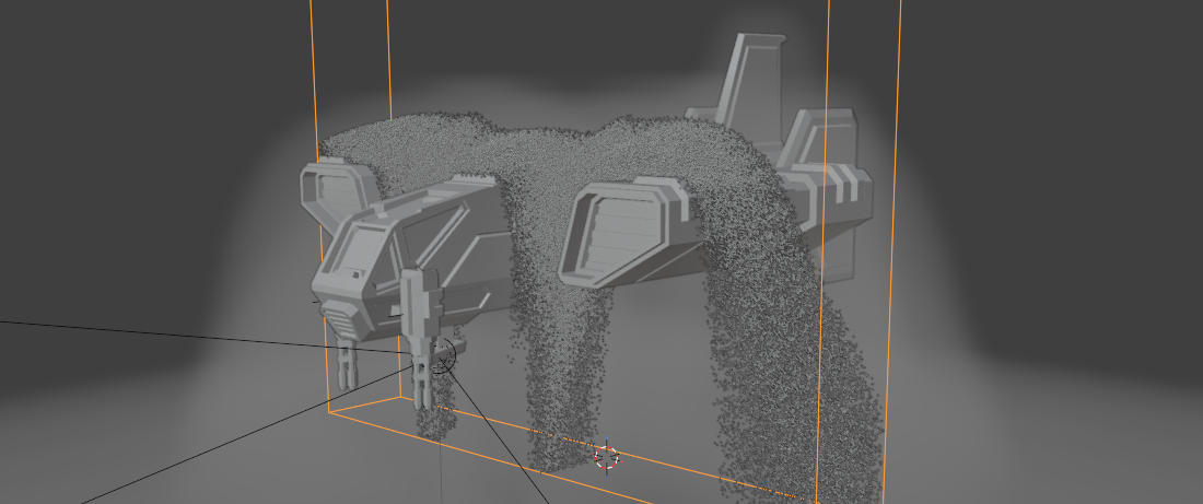 The space ship colliders were a bit tricky. But thanks to Blender operations and modifiers we can work around the non-manifold edges and use Squishy Volumes Collider Grid output to debug inconsistencies.