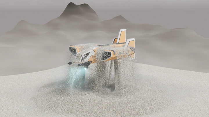 This blog post is about the making of a scene that shows a space ship emerging from the desert. The purpose is to test and showcase Squishy Volumes’ capabilities in scenes with millions of particles.