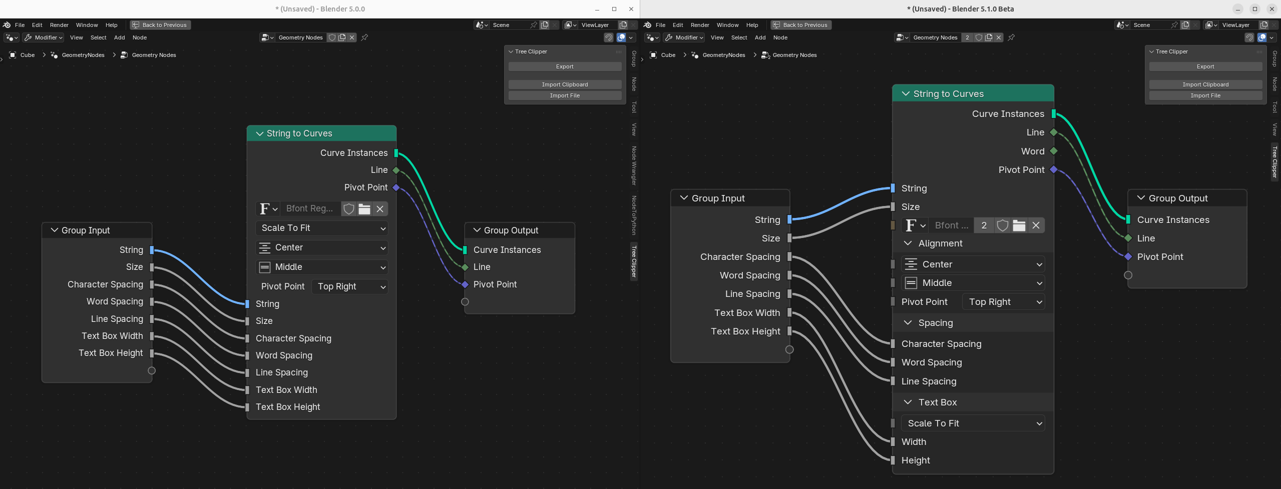 At the moment, it’s really just getting things from 5.0 to 5.1, but that worked out pretty good. For example, the String to Curves node changed a lot, and Tree Clipper does what you’d expect: