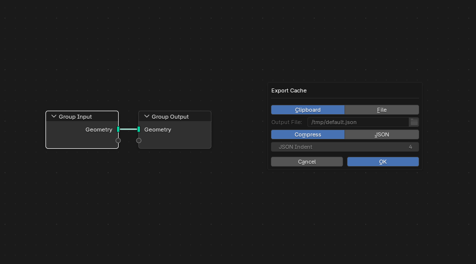 For example, binary .blend files might be better suited. Especially, if we’re also interested in exporting/importing meshes or other large data. Node trees can be loaded from a .blend file into another project. And there’s the Asset Browser, which offers a nice set of workflows. These can also leverage Blender’s own compatibility system. Nice!